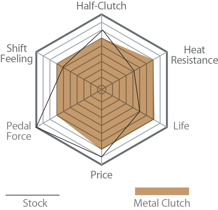 CLUTCH DISC: This high-friction metal disc, developed exclusively for competition, uses a damper-type design to balance improved torque transmission without sacrificing operability. It offers excellent performance for both demanding circuit use and everyday driving on public roads.