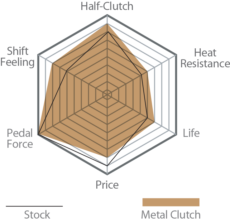 CLUTCH DISC: This high-friction metal disc, developed exclusively for competition, uses a damper-type design to balance improved torque transmission without sacrificing operability. It offers excellent performance for both demanding circuit use and everyday driving on public roads.